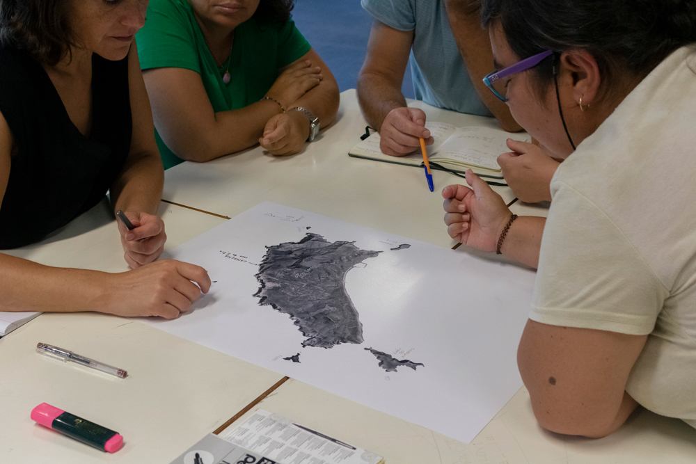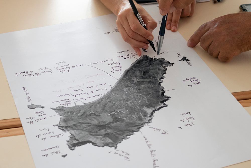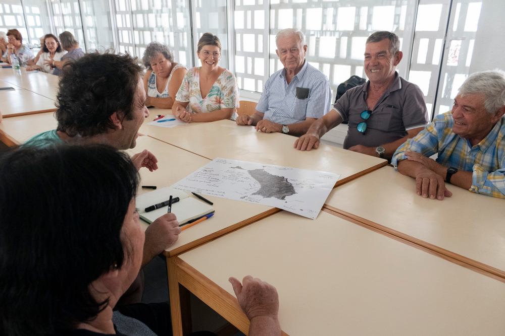 O objetivo desta primeira residência da equipe artística (19 - 22 Setembro 2022) é o de conhecer a escola, a ilha e a comunidade. Para conhecer os quatro grupos da comunidade (Universidade Sénior, Centro de Dia da Fundação Nossa Senhora da Piedade, CACI – Centro de Actividade e Capacitação para a Inclusão e CREE – Centro de Recursos Educativos Especializados), com as quais o projecto será trabalhado, propôs-se a realização de uma reunião com os responsáveis e as pessoas da instituição conhecedores da sua realidade. Faremos em cada uma das quatro instituições uma entrevista-mapa para começar desde logo a levantar um conjunto de características de cada instituição (desde o que gostam de lá fazer ao que para eles falta fazer). Pretendemos, assim, procurar caminhos e elementos para imaginar como se pode habitar a Escola de Porto Santo e trabalhar na Ilha a partir da realidade de cada instituição, em relação com as oficinas que iremos aí posteriormente fazer. Conhecer a ilha compreende também um período de auscultação, de escuta do lugar, das pessoas da ilha, dos grupos e as que coordenam as instituições com quem vamos trabalhar, conhecer as várias escolas e o seu ambiente, perceber como se distribuem na ilha, visitar a biblioteca, etc… de forma a perceber como ajustamos o projecto que delineámos à concretude da ilha e dos seus habitantes. Partindo de uma articulação entre diferentes abordagens práticas e teóricas procurar-se-á construir com a comunidade um conjunto de interpretações dos lugares e do modo como as pessoas se relacionam com eles para compreender geografias sociais e históricas e topografias sensíveis e imaginárias. Fazendo da Escola de Porto Santo casa e ponto de encontro de Mapeamentos para a ilha se reimaginar, desenvolver-se-á, ao longo do quadriénio 2023-2026, uma série de oficinas com a comunidade em torno da relação com esta antiga escola e com os lugares da ilha enquanto acontecimento. Equipe Artística